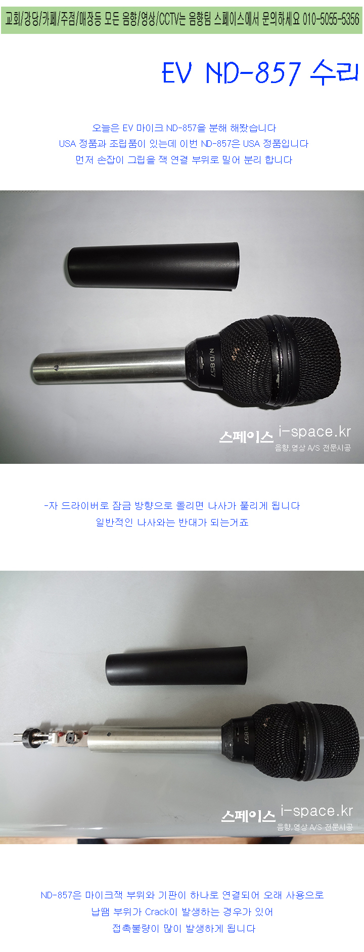 ND-857 마이크 수리,접촉불량,Crack,납땜부위,기판,음향팀,A/S