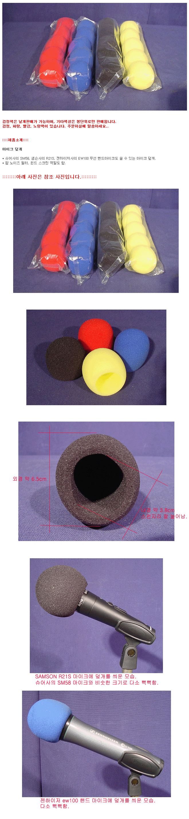 다양한 칼라로 마이크외관을 돋보이게 해주기도 하는 스폰지는 외관 뿐아니라