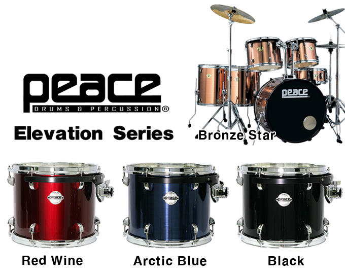 ■제품특징 대만생산 브랜드 PEACE의 엘리베이션 드럼세트 입니다. 본 상품은 PEACE 제품중에서도 단연 돋보이는 인기상품 으로써,생산 이레 꾸준한 사랑을 받고 있는 모델입니다. 초보자 입문용부터 연주용으로까지 손색이 없는 야무진 구성과 통 울림이 그 장점중에 하나라고 할 수 있는데요, 100만원 미만의 드럼에서는 흔히 볼 수 없는 많은 스펙들을 자랑 합니다. 몇가지 소개해 드리자면, 보통 저가대 드럼들은 포퓰러나무나 베이스우드(성냥깨비 만드는 나무)등으로 생산 됩니다.이유는 생산원가 절감이겠지요?? 하지만 피스 엘리베이션은 생산비 절감 보다느 제품의 퀄리티에 중점을 두어 마호가니(째즈드럼에 많이 쓰임)를 사용하였습니다. ※마호가니(mahogany)의 특징은, 높이 약 30M의 붉은빛을 띠는 단단하고 내수성이 강한 나무로서,열대와 아열대 지방에서 자라는 나뭇결이 매우 아름다운 활엽수 입니다. 세계에서 가장 좋은 가구용 나무로 사용되며,특히 장롱을 만드는데 널리 쓰이고 있습니다. 위와 같은 고급목재에 속하는 마호가니 쉘은 밝고 따뜻한 음색을 제공하며, 아열대지역에서 자라는 특성상 건조하고 묵직한 음색을 자랑하며 재즈드럼과 고급형 드럼에 널리 사용 되고 있습니다. 2010년부터 스네어 러그가 6개에서 8개로 업그레이드 되어 튜닝이 풀리는것을 최소화 하였으며,좀더 알맹이 있는 스네어 사운드를 제공합니다. 또한,쉘에 구멍을 뚫는 방식의 홀딩이 아닌,마운팅 방식으로 통울림을 극대화 하였으며, 브러쉬 메탈 커버링 피니쉬로 외향적인 고급스러움을 한층 더 하였습니다.